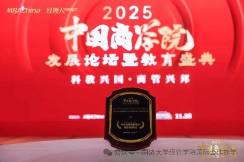 喜讯丨同济-UTAEMBA项目荣获“2025年度商科硕士项目TOP10 ”